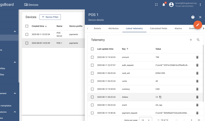 | Thingsboard allowed us to view MQTT telemetry out of the box |